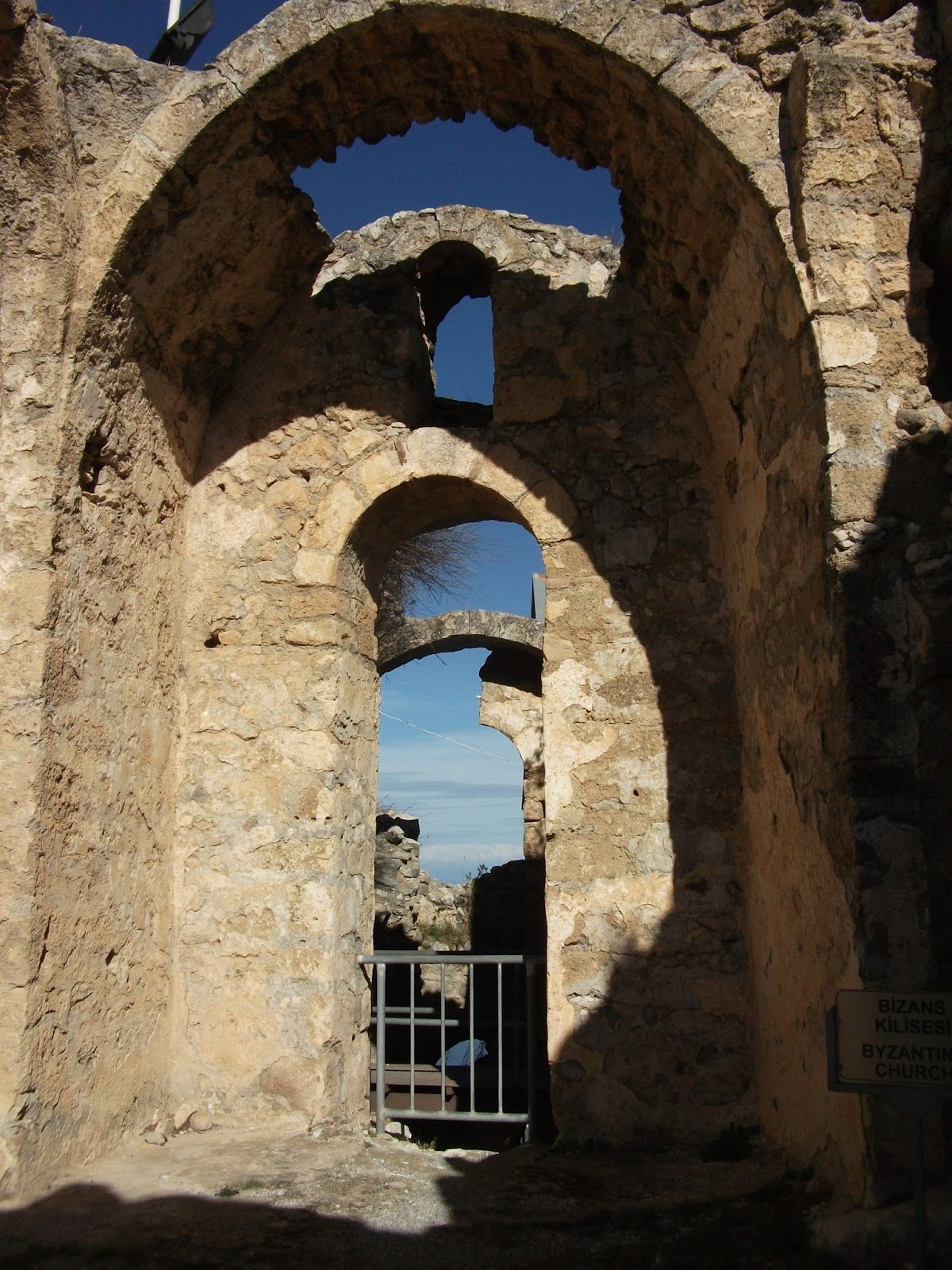 Armed with a map of walking trails, I want to follow the path that slides down the mountain, and head back to Kyrenia that way. But I'm hesitant. Just because there's a dotted line on a piece of paper does not mean that the path will be clear, or even exist. And then there is my propensity for getting lost. And there's a military area just on the other side of the road leading to the castle and it extends down the mountainside. The soldiers are practicing, round after round of shots are fired, then after-silences, laden with the shadows of the sound.